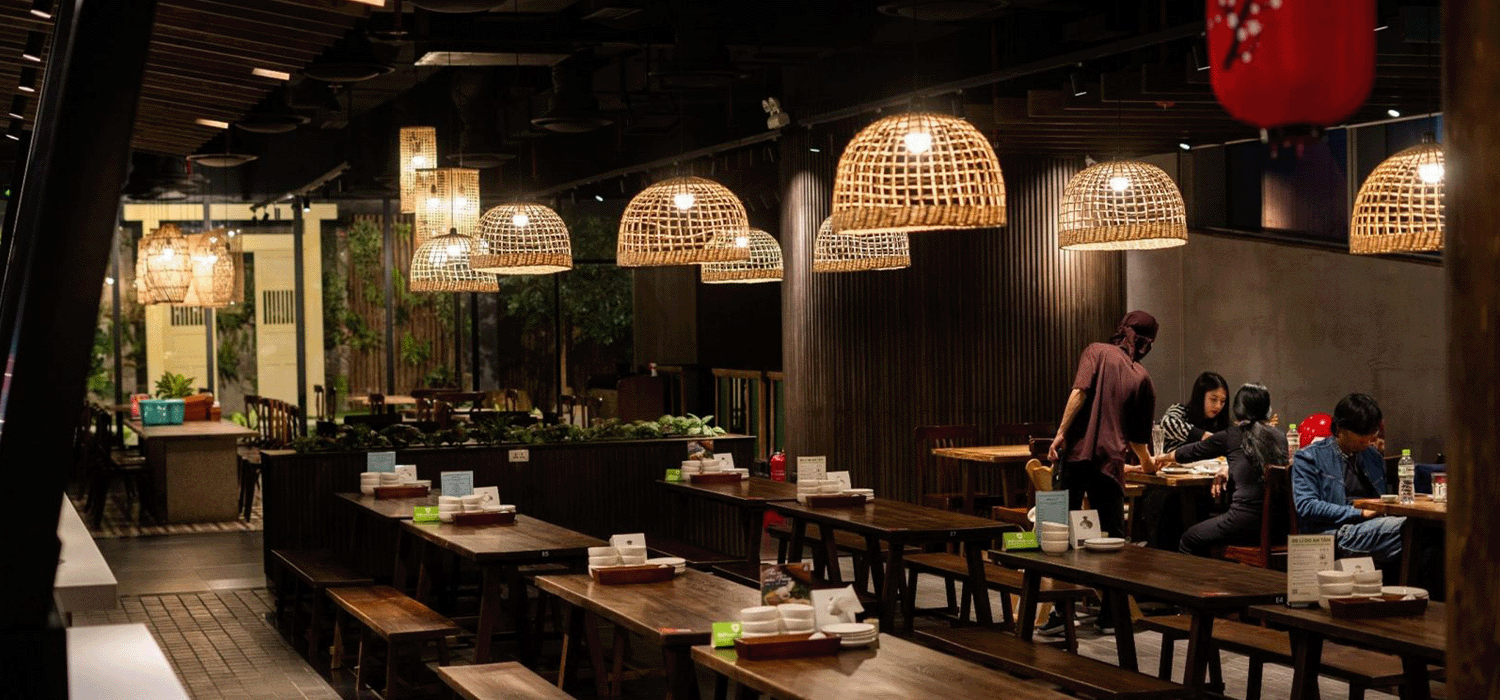 Không gian nhà hàng thoáng đãng, trang trí đậm chất Việt, tạo cảm giác gần gũi và thân thuộc. Mỗi góc nhỏ đều gợi nhớ về những bữa cơm gia đình đầy ấm cúng. Nếu bạn là tín đồ của món cuốn, đừng bỏ lỡ buffet cuốn phủ phê với giá chỉ 159.000 VNĐ/người, đặc biệt cho nhóm từ 3 khách trở lên.