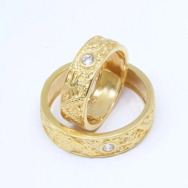Các mẫu nhẫn cặp dưới 5 triệu thường được làm từ hợp kim vàng cao cấp, kết hợp với các chi tiết tinh xảo hoặc đá quý nhỏ, giúp tăng thêm phần nổi bật và ý nghĩa cho sản phẩm. Một số thiết kế phổ biến như nhẫn cưới phong cách Hàn Quốc với các đường nét cách điệu tượng trưng cho sự gắn bó bền chặt, hoặc nhẫn vàng lông đuôi voi mang ý nghĩa thủy chung, vĩnh cửu. Những mẫu này không chỉ đẹp mắt mà còn chứa đựng nhiều giá trị tinh thần sâu sắc.