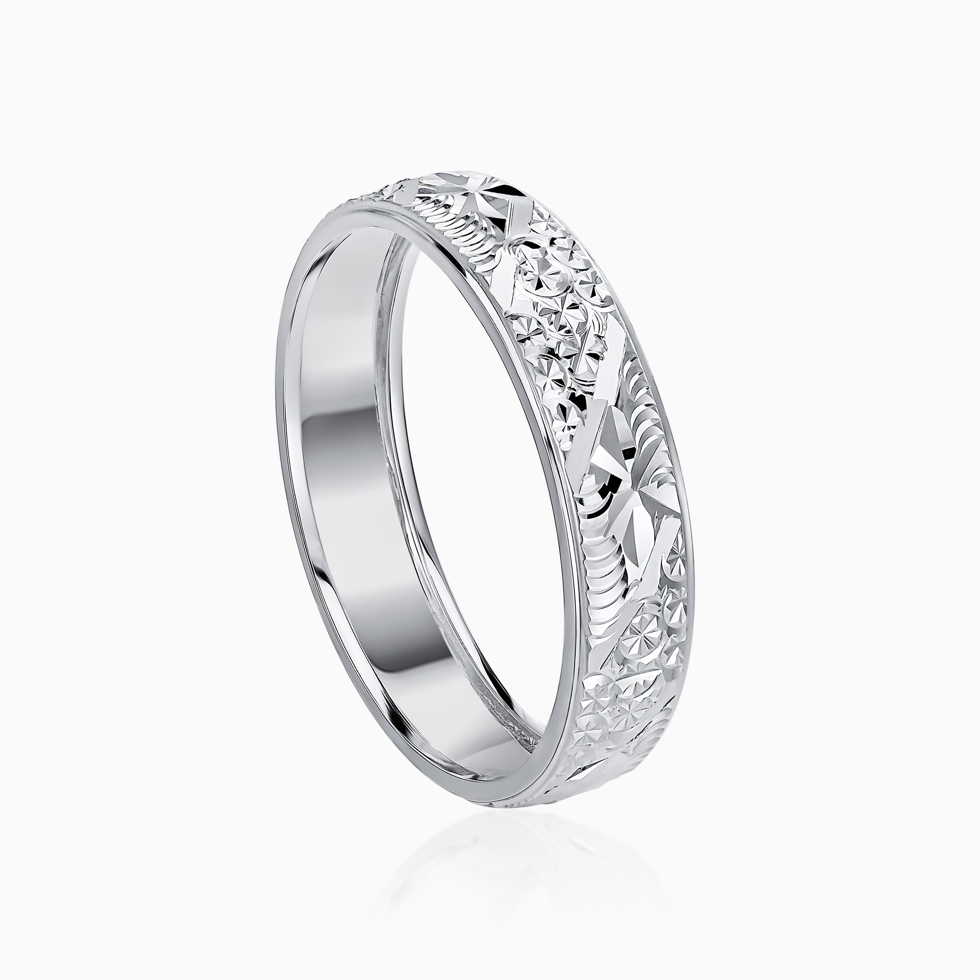 Nhẫn cưới vàng trắng hiện đang rất được ưa chuộng bởi vẻ đẹp tinh tế, sang trọng và hiện đại. Vàng trắng là hợp kim của vàng nguyên chất với các kim loại khác như bạc, palladium, tạo nên màu sắc sáng bóng, thuần khiết, rất phù hợp với những cặp đôi trẻ yêu thích phong cách thanh lịch và thời thượng.