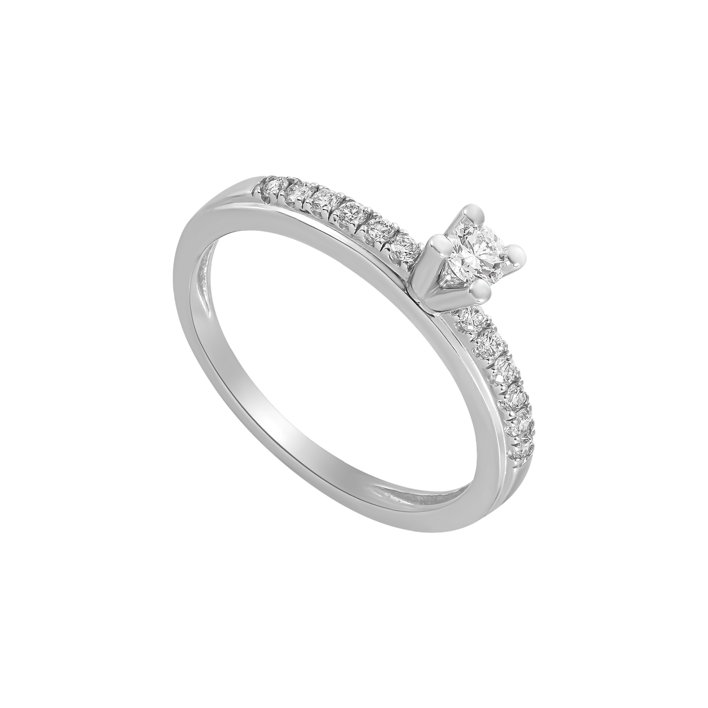Nhẫn kim cương vàng trắng luôn là lựa chọn hoàn hảo cho những ai yêu thích sự sang trọng và thanh lịch. Được chế tác từ vàng trắng cao cấp 14K, những chiếc nhẫn này không chỉ mang lại vẻ đẹp lấp lánh mà còn rất bền bỉ. Với thiết kế tinh xảo, viên kim cương tròn tỏa sáng ở đầu nhẫn cùng dải kim cương nhỏ chạy dọc thân tạo nên sự quyến rũ bất tận.