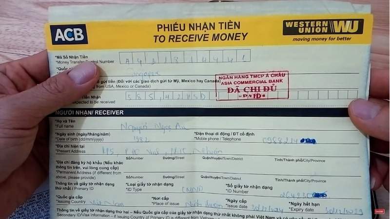 Hãy nhớ rằng, để nhận tiền, bạn cần cung cấp một số thông tin như tên người gửi và có giấy tờ tùy thân. Giao dịch dễ dàng và nhanh chóng, đó chính là ưu điểm mà ACB mang lại cho bạn!