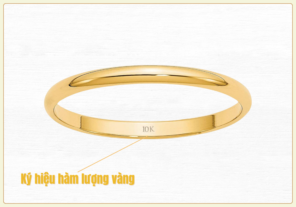 Vàng 10K có hàm lượng vàng nguyên chất khoảng 41,6%, phần còn lại là các kim loại khác giúp tăng độ cứng và dễ gia công, làm cho nhẫn vàng 10K bền hơn và ít bị trầy xước trong quá trình sử dụng. Tuy nhiên, vì hàm lượng vàng nguyên chất thấp hơn nên giá vàng 10K cũng thấp hơn so với vàng 14K hay 18K.