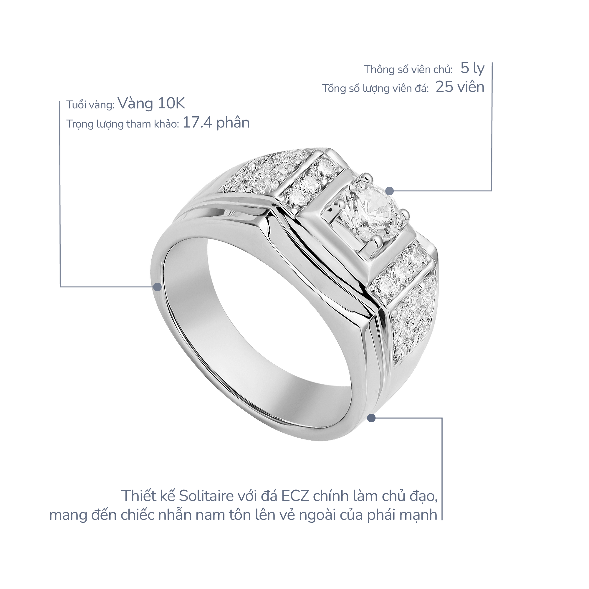 Không chỉ là món trang sức, nhẫn vàng trắng còn là biểu tượng của sự tinh tế và bản lĩnh phái mạnh, dễ dàng phối hợp với nhiều kiểu trang phục khác nhau, giúp các quý ông tự tin thể hiện cá tính riêng của mình trong mọi hoàn cảnh.