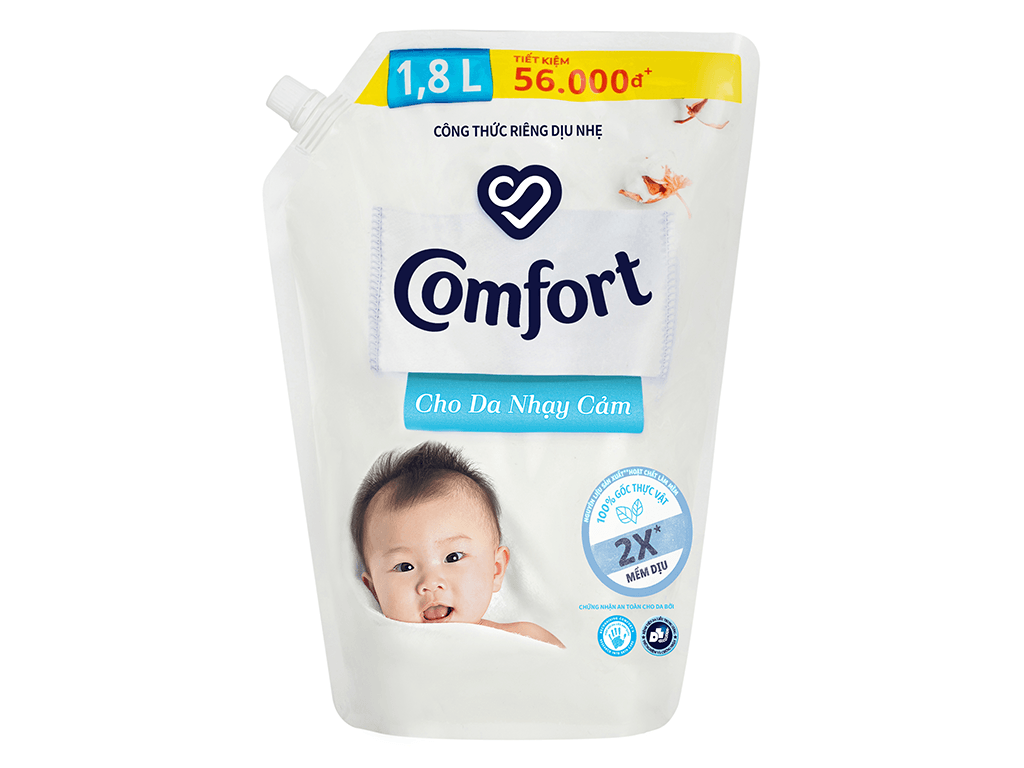 Nước giặt Comfort cho bé là sản phẩm được nhiều gia đình Việt tin tưởng và lựa chọn. Thành phần của sản phẩm chứa 100% gốc thực vật, hoàn toàn chiết xuất từ các nguyên liệu tự nhiên, giúp đảm bảo an toàn cho làn da nhạy cảm của trẻ sơ sinh.