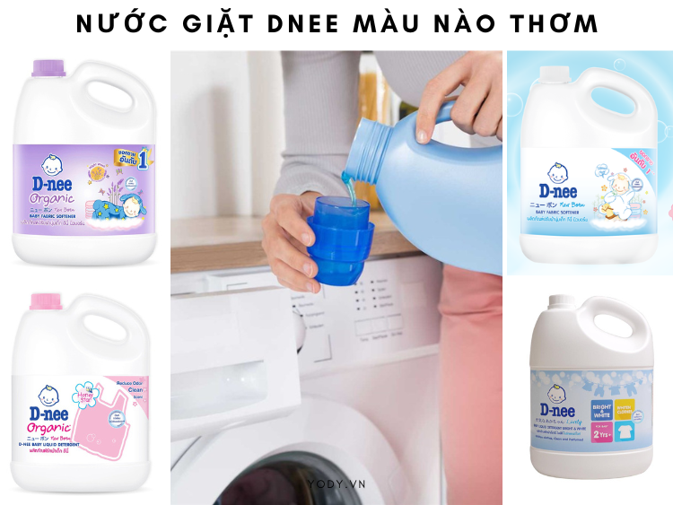 Nước giặt Dnee có nhiều màu sắc với hương thơm riêng biệt, khiến các bà mẹ băn khoăn không biết chọn mùi nào cho hợp. Theo mình dùng thử và đọc review từ nhiều chị em, màu xanh dương thường được khen thơm nhất, với mùi phấn hoa ngọt ngào, dịu dàng, lưu hương lâu trên quần áo cả ngày mà không gắt.