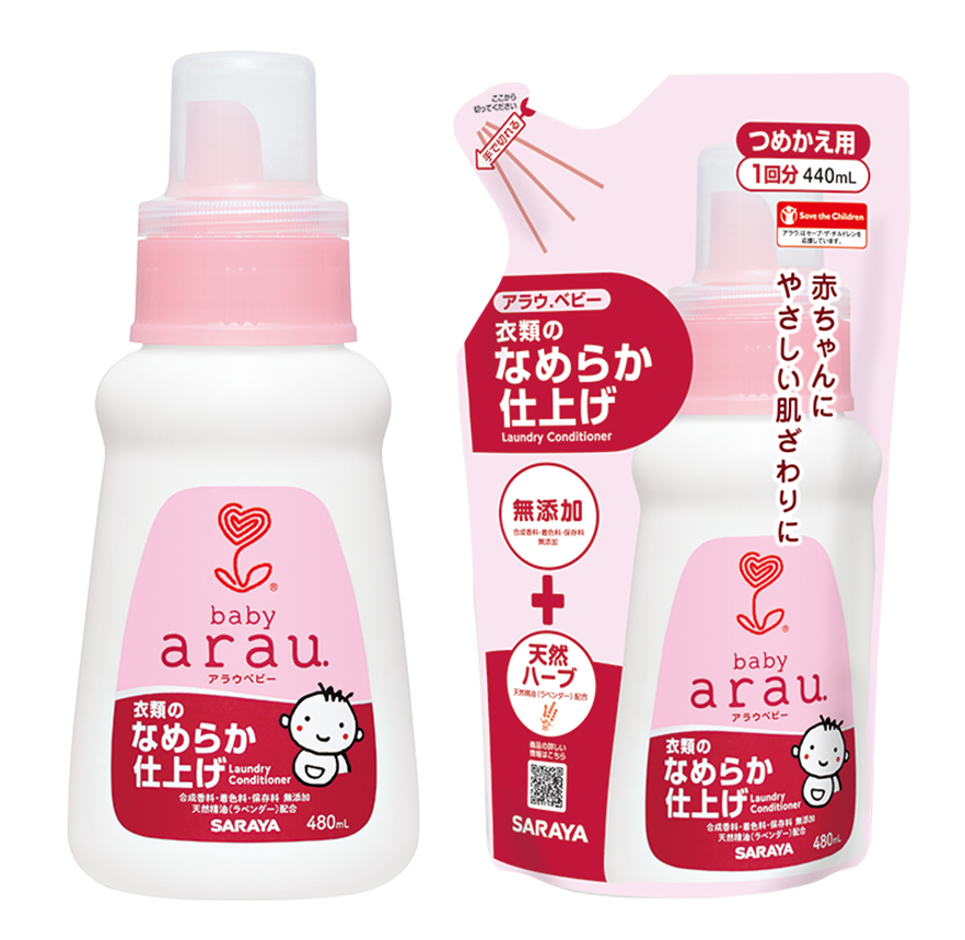 Tiếp theo là Arau Baby Nhật Bản, 100% thảo mộc tự nhiên, không chất tẩy tổng hợp, giặt sạch mà vải vẫn mềm mịn, không cần xả thêm. Nhiều mẹ khen quần áo bé thơm lâu, an toàn tuyệt đối cho da mỏng.