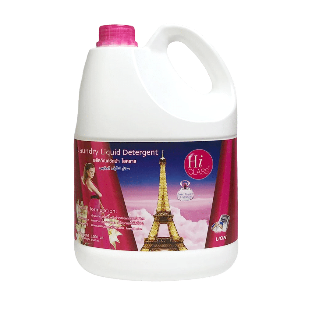 Nước giặt Hi Class là “người bạn thân thiết” của mọi gia đình, được sản xuất tại Thái Lan bởi Lion Corporation, với công thức đặc biệt giúp quần áo sạch bóng mà vẫn giữ được độ mềm mịn.