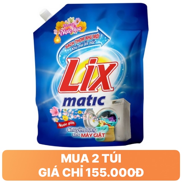 Giá bán khá đa dạng tùy dung lượng và nơi mua. Túi 3.5 lít Lix Matic hương nước hoa chỉ khoảng 93.000 đồng, siêu hời cho giặt máy hàng ngày. Còn phiên bản sạch thơm hương ngàn hoa 3.2-3.5kg dao động từ 105.000 đến 179.000 đồng một túi, tùy siêu thị hay shop online.
