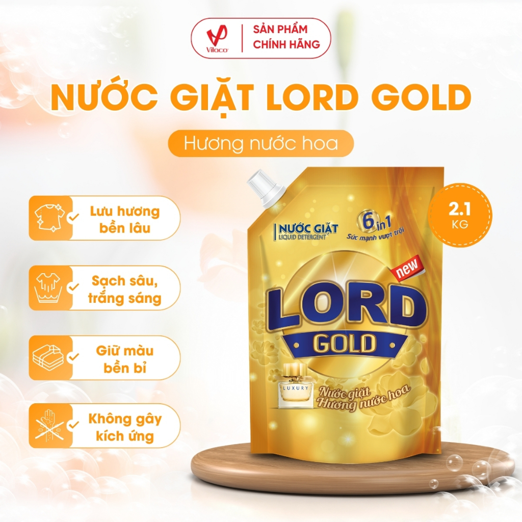 Lý do giá Lord Gold cao hơn so với các dòng nước giặt thường là vì chất lượng vượt trội. Sản phẩm sử dụng hương nước hoa sang trọng với khả năng lưu hương gấp 3 lần so với nước giặt Lord thường. Công thức hiện đại giúp quần áo mềm mại, thơm tươi mà không cần dùng nước xả vải, mang lại hiệu quả giặt tẩy 6 trong 1.