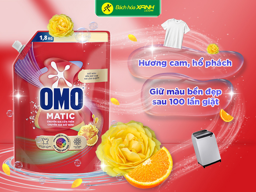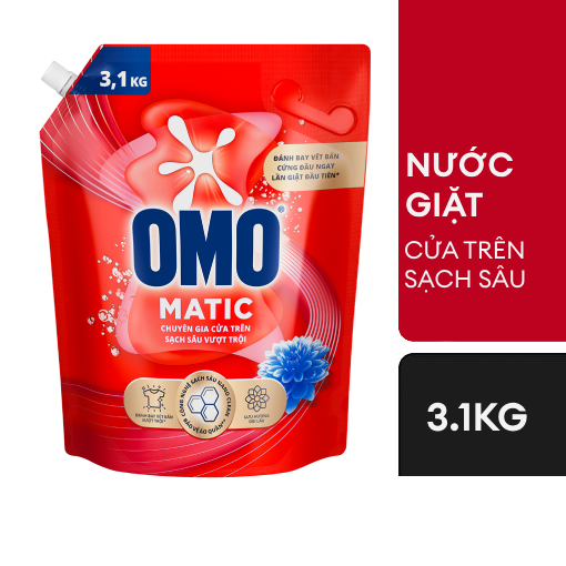Điểm nổi bật của OMO Matic là khả năng đánh bay vết bẩn vượt trội và công thức chuyên dụng giúp quần áo sáng màu như mới. Hương thơm nước hoa được tinh chế kỹ lưỡng sẽ lưu lại trên sợi vải đến 72 giờ sau khi giặt, mang lại cảm giác thơm mát dễ chịu.