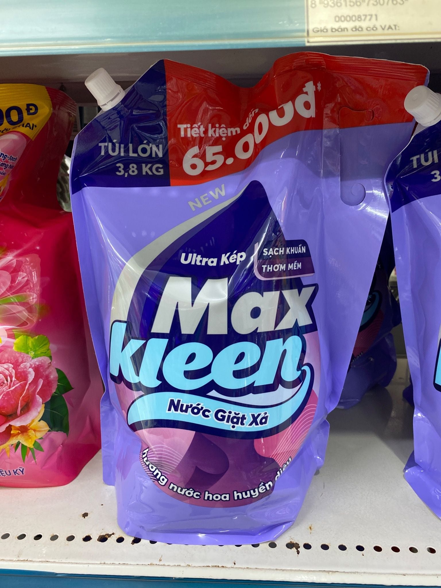 Nước giặt xả MaxKleen đang là lựa chọn yêu thích của nhiều bà nội trợ nhờ khả năng giặt sạch, diệt khuẩn và lưu hương lâu. Giá cả dao động tùy dung lượng và nơi bán, thường rất phải chăng cho túi lớn 3.8kg.