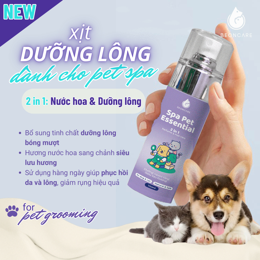 Còn nếu thích cao cấp hơn, ghé Paddy Pet, Mozzi hay Beoncare để thử Forcans dưỡng lông chống tĩnh điện 170.000 VND/300ml, hoặc Beoncare xịt 2-in-1 lưu hương 3-5 tháng giá 179.000 VND/100ml. Pethouse và Louisforpet có dòng Luxury Seduisant, SH hay Louis Red Ruby sang trọng.