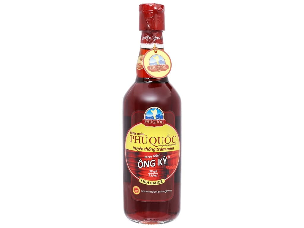 Nước mắm Ông Kỳ là sản phẩm nổi tiếng đến từ Phú Quốc, được đóng chai thủy tinh cao cấp và trang bị nắp nhựa nguyên sinh, giúp bảo đảm chất lượng tối ưu từng giọt nước mắm cốt thơm ngon. Được làm hoàn toàn từ cá cơm than đen, than đỏ và cá sọc tiêu, nước mắm Ông Kỳ mang đến hương vị đặc trưng mà khó loại nước mắm nào sánh được. Đặc biệt, độ đạm tự nhiên cao của nó còn là điểm cộng lớn cho những món ăn gia đình.