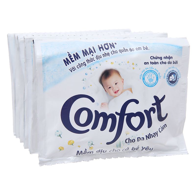 Mình hay dùng loại Comfort Baby với hương phấn dịu nhẹ, công thức đậm đặc chỉ cần xả một lần là vải mềm mịn, khử sạch mùi sữa chua hay tã bẩn. Nó còn chống nhăn, ngừa tĩnh điện, nên đồ bé mặc thoải mái cả ngày mà không lo bí bức.