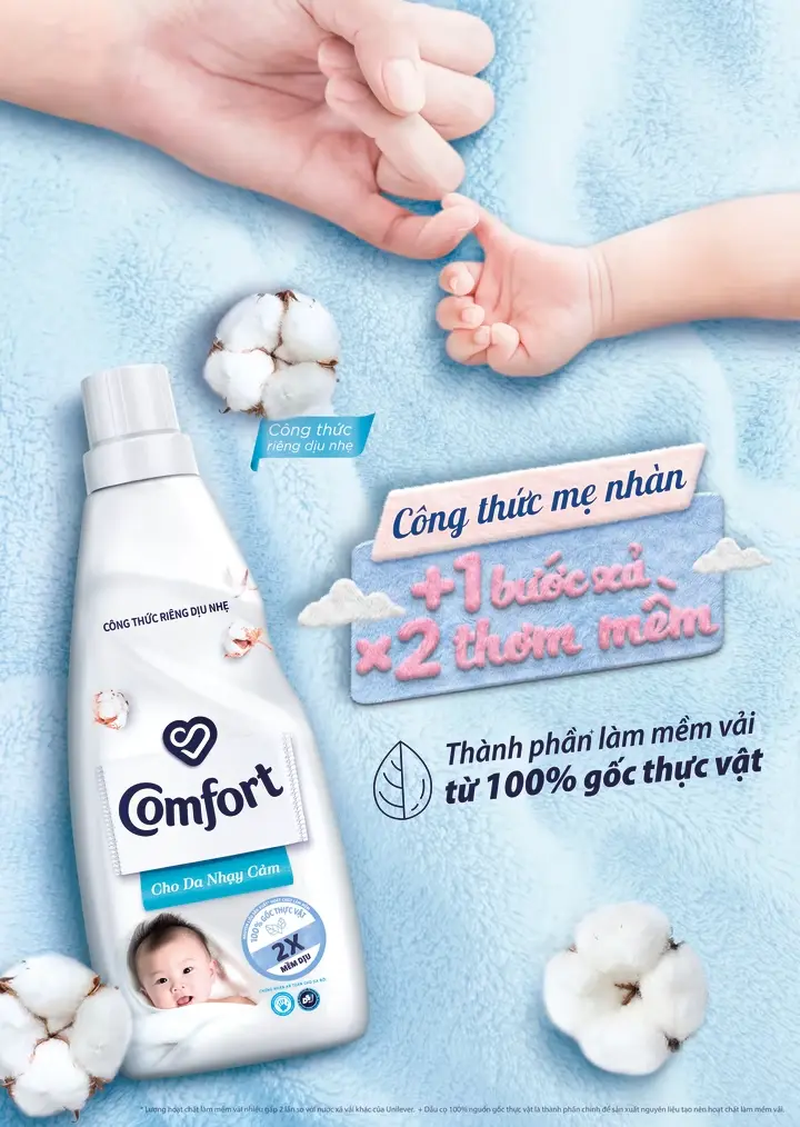 Nói đến nước xả vải, chắc hẳn ai cũng nghĩ ngay đến những chai quen thuộc giúp quần áo mềm mại và thơm tho suốt ngày dài. Comfort là “ông lớn” không thể thiếu trong giỏ hàng của nhiều gia đình Việt, với các dòng như Hương Ban Mai xanh dương tươi mát hay Gió Xuân xanh lá tràn đầy sức sống. Thương hiệu từ Unilever này nổi bật nhờ công nghệ lưu hương đa tầng, giữ mùi dịu nhẹ lên đến cả ngày.