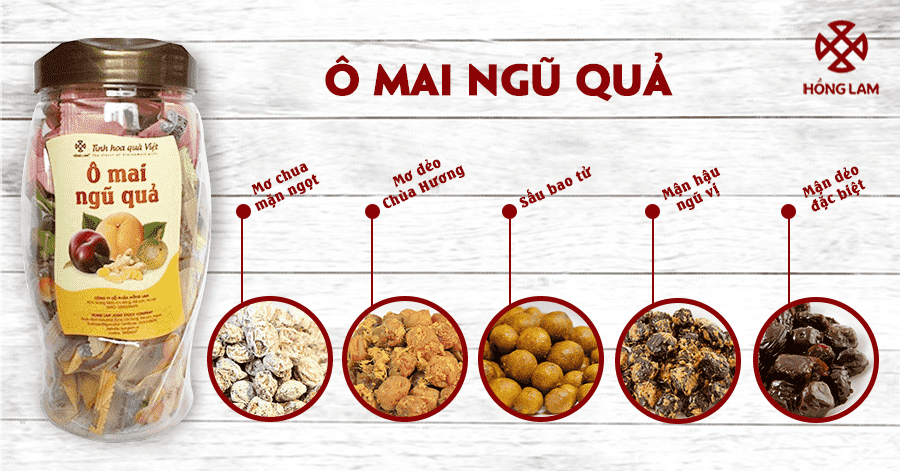 Hồng Lam cũng nổi tiếng với các sản phẩm ô mai đậm vị truyền thống như ô mai xí muội chua ngọt, ô mai Sấu bao tử hay ngũ quả. Bên cạnh đó, bộ quà VIP với chai rượu Mơ Núi Tản và các loại ô mai khác chắc chắn sẽ là một món quà sang trọng, thể hiện tình cảm và sự trân trọng đối với người nhận.