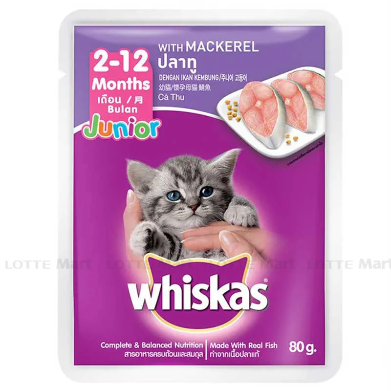 Pate Whiskas là lựa chọn tuyệt vời để chăm sóc các bé mèo con từ 2-12 tháng tuổi đấy! Sản phẩm dạng gói 80-85g, với hương vị cá ngừ hay cá thu thơm lừng, giàu protein, Omega 3-6, DHA và canxi giúp bé phát triển toàn diện, lông mượt mà, xương chắc khỏe và tăng sức đề kháng.