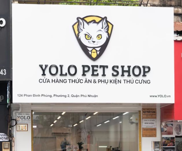 Rồi còn YOLO Pet Shop ở 124 Phan Đình Phùng, ngay đối diện chợ Phú Nhuận nữa. Dù mới mở gần 1 năm nhưng đã hot lắm, chuyên thức ăn dinh dưỡng, vòng cổ, yếm xinh xắn. Mình thích vì giao hàng nhanh, giá mềm, đặc biệt mấy loại pate KitCat hay Cesar cho mèo chó ăn ngon miệng.