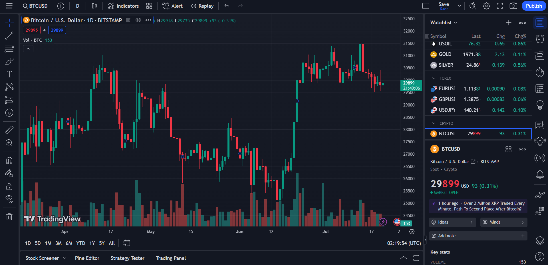 TradingView là một phần mềm phân tích biểu đồ tài chính rất phổ biến và hữu ích cho cả người mới và nhà đầu tư chuyên nghiệp. Điểm đặc biệt của TradingView là nó cung cấp rất nhiều loại biểu đồ khác nhau như nến, Heikin Ashi, Renko,… giúp người dùng dễ dàng theo dõi biến động giá theo thời gian thực. Bạn còn có thể tùy chỉnh biểu đồ với nhiều chỉ báo kỹ thuật và công cụ vẽ để phục vụ cho việc phân tích sâu hơn.