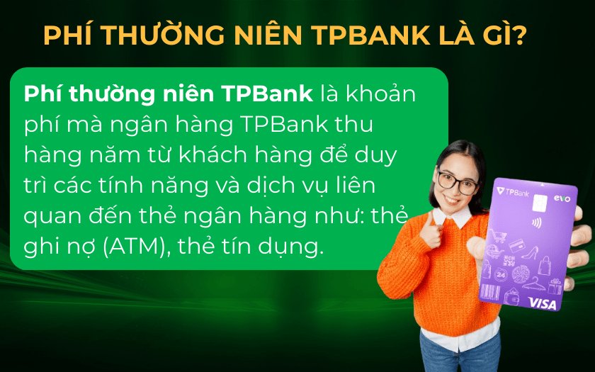 Phí thường niên của các loại thẻ tại TPBank thường dao động từ 50.000 đến 200.000 đồng tùy vào từng loại thẻ. Chẳng hạn, thẻ TPBank EVO, bạn chỉ phải trả 495.000 đồng mỗi năm, và nếu thực hiện đủ 3 giao dịch trong 90 ngày đầu, bạn sẽ được miễn 100% phí quản lý.