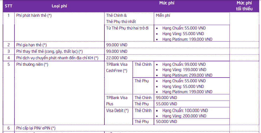 Với mức phí này, TPBank mang đến nhiều lựa chọn cho khách hàng, giúp mọi người có thể dễ dàng tìm được loại thẻ phù hợp với nhu cầu sử dụng của mình.