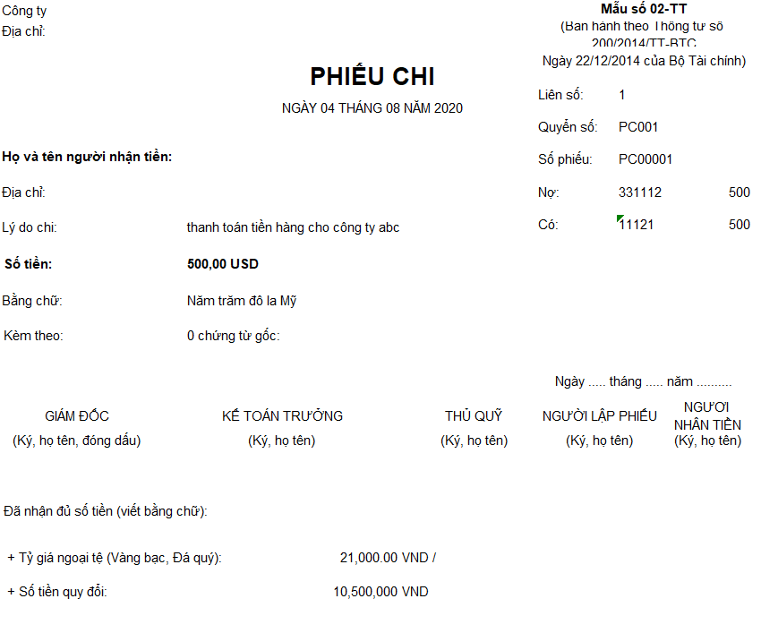 Phiếu chi là một chứng từ quan trọng trong công tác kế toán của doanh nghiệp, giúp ghi nhận, kiểm soát các khoản chi ra một cách minh bạch và đầy đủ. Hiện nay, việc lập và sử dụng phiếu chi cần tuân thủ quy định tại Thông tư 200/2014/TT-BTC do Bộ Tài chính ban hành, nhằm đảm bảo tính hợp pháp cũng như thuận tiện cho công tác kế toán, kiểm toán. Bài viết dưới đây sẽ giúp bạn hiểu rõ về phiếu chi theo Thông tư 200, từ mẫu phiếu, cách lập, đến các quy định, và hướng dẫn tải mẫu phiếu chi mới nhất theo đúng quy định hiện hành.