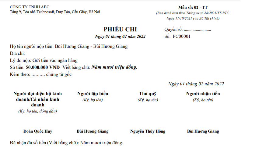 Ngoài ra, việc ghi nhận ngày, tháng, năm lập phiếu và ngày chi tiền cũng rất cần thiết. Trước khi xuất quỹ, phiếu chi bắt buộc phải có đầy đủ chữ ký của người lập, kế toán trưởng, thủ quỹ và giám đốc. Điều này đảm bảo sự kiểm soát chặt chẽ về tài chính cho doanh nghiệp.