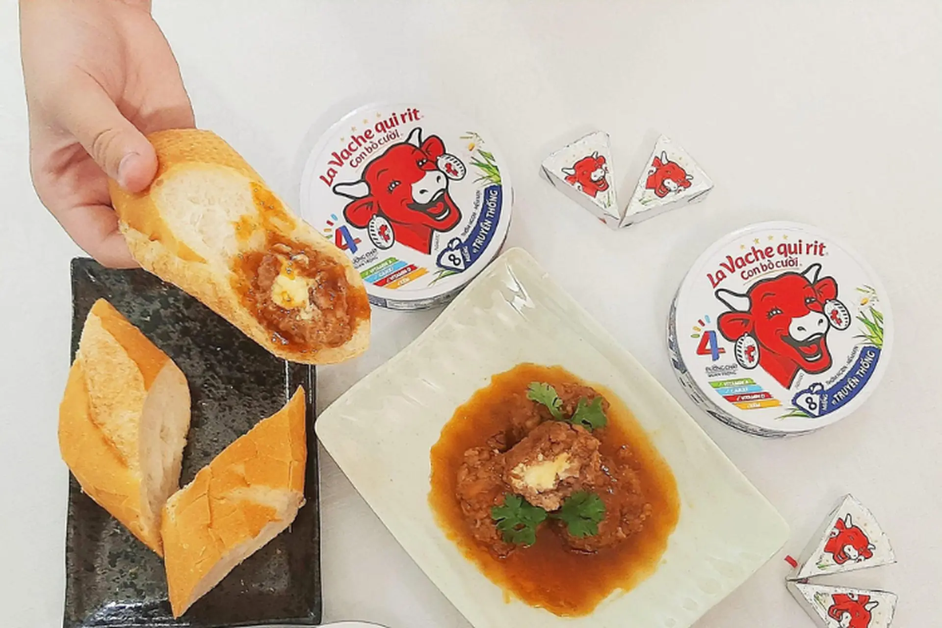 Phô mai Con Bò Cười là một nguyên liệu rất đa năng trong bếp, dễ dàng biến hóa thành nhiều món ngon. Để tạo ra một món phô mai tan chảy, bạn chỉ cần cắt phô mai miếng cho vào bát, thêm một chút nước nóng và dùng thìa nghiền nhuyễn. Món này rất thích hợp để thưởng thức vào buổi sáng giúp cung cấp năng lượng cho ngày dài hoạt động.