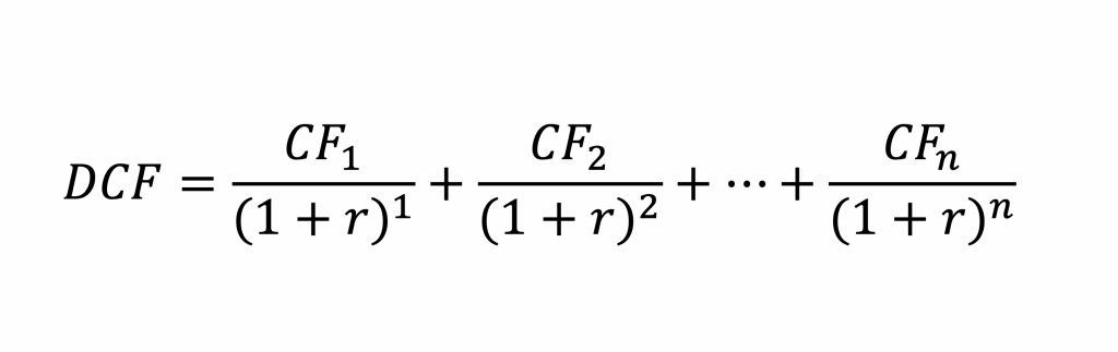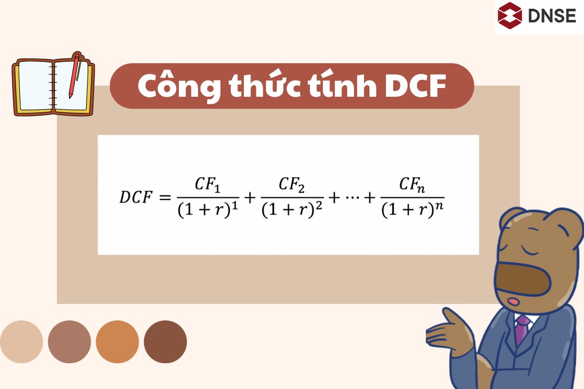 Công thức chiết khấu dòng tiền (Discounted Cash Flow – DCF) là một công cụ hữu ích giúp chúng ta định giá các khoản đầu tư. DCF xem xét giá trị thời gian của tiền, tức là nó tính toán giá trị dòng tiền trong tương lai và quy đổi về hiện tại. Công thức này cơ bản gồm ba yếu tố: dòng tiền trong kỳ (CF), lãi suất chiết khấu (r) và số kỳ (n).