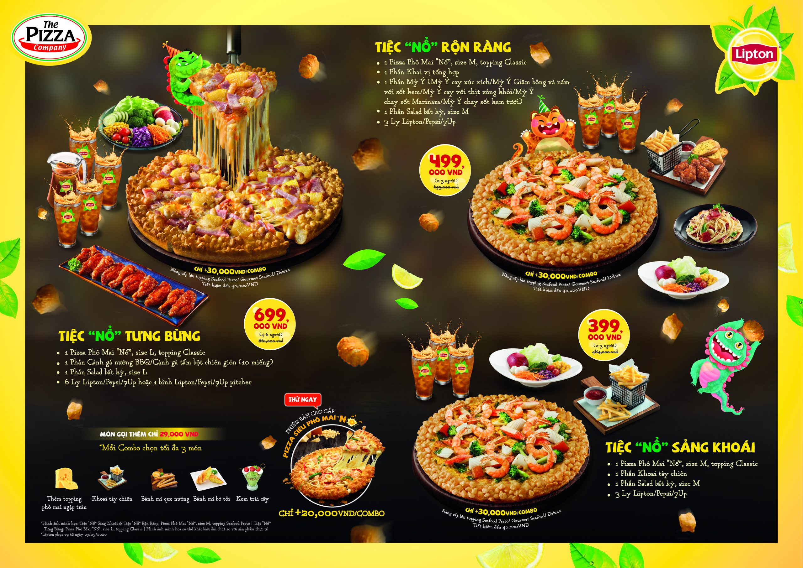 Bên cạnh đó, menu của The Pizza Company vô cùng đa dạng với nhiều combo hấp dẫn. Chẳng hạn, bạn có thể thưởng thức một combo bao gồm pizza, salad và nước chỉ với 318.600 VNĐ. Hơn nữa, việc đặt món trực tuyến và giao hàng tận nơi rất dễ dàng, giúp bạn tiết kiệm thời gian mà vẫn được thưởng thức những món ăn ngon lành.