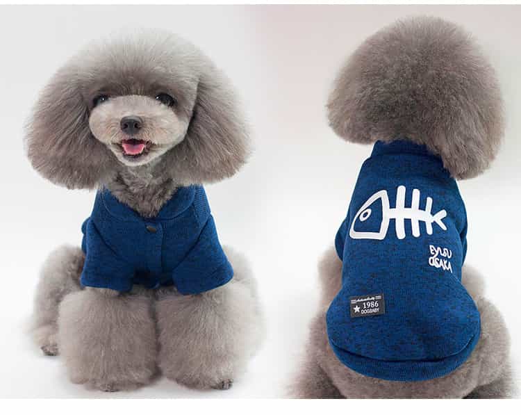 Mình thích kiểu dáng tiện lợi, dễ mặc cởi, với form gọn gàng phù hợp chó từ 1.5-9kg. Có size L vòng ngực 43cm, dài lưng 33cm cho bé 3.5-4.5kg, hay XL lên đến 7kg. Nhiều màu xinh xắn, từ áo len mũ trùm đầu sang trọng đến kiểu bóng chày hay áo nỉ cà rốt ấm áp từ Puppy Pet Shop.