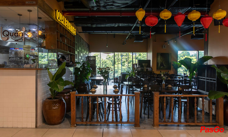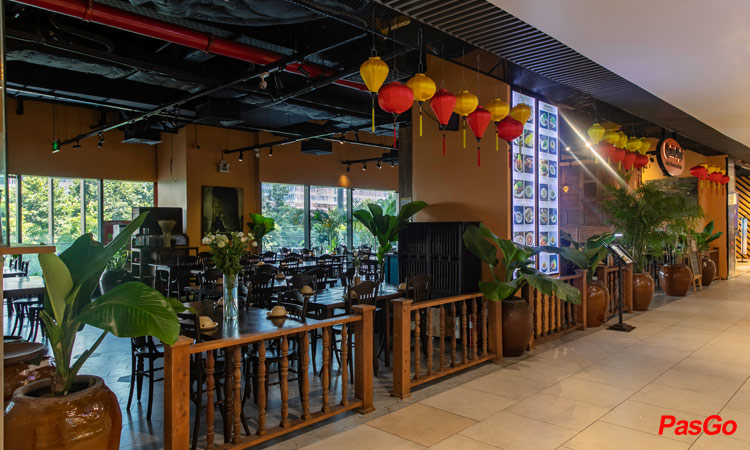 Không gian của Quán Bụi Estella Place mang phong cách Indochine tinh tế, kết hợp giữa nét mộc mạc và sang trọng. Nội thất chủ yếu sử dụng gỗ, sàn gỗ cùng đèn lồng trang trí tạo nên một bầu không khí ấm cúng, gợi nhớ về những ký ức xưa cũ của miền Nam Việt Nam. Thiết kế này giúp thực khách cảm nhận được sự gần gũi, thân thuộc như đang trở về với mâm cơm gia đình truyền thống.