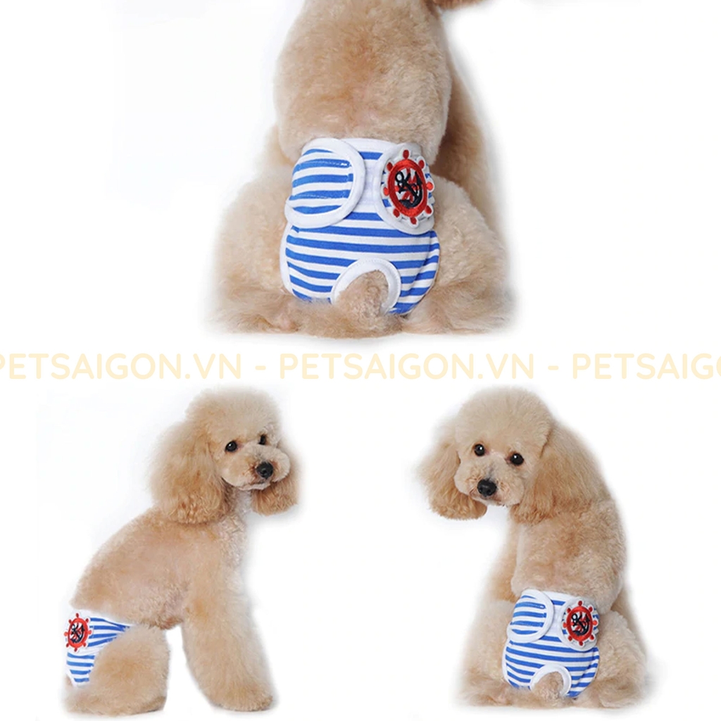 Sản phẩm thường làm từ cotton thoáng mát, mềm mại ôm sát vùng mông, có thiết kế yếm tiện lợi với dây gài chắc chắn. Dù là chó con nhỏ xinh hay cún lớn hơn, đều có size từ S đến XL, co giãn tốt để bé vận động thoải mái.