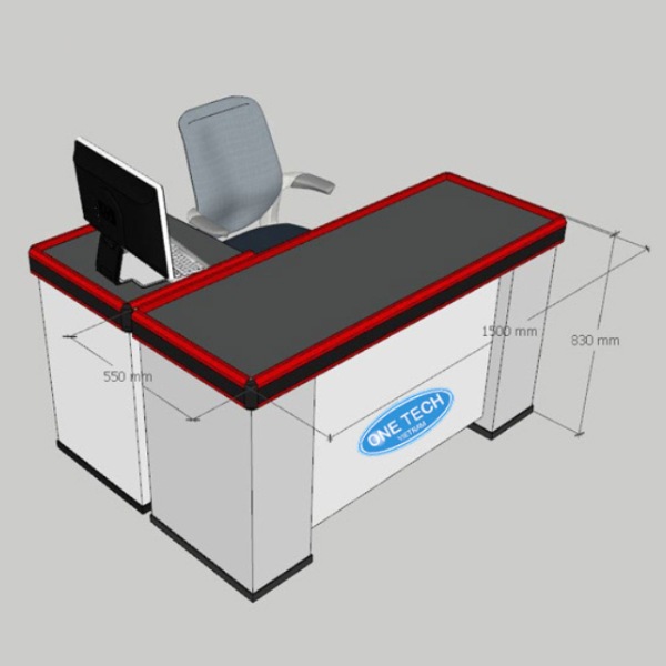 Kích thước tiêu chuẩn của quầy là dài 1,5m, rộng 55cm và cao 83cm, đủ để sản phẩm và thiết bị thanh toán không bị chật chội. Đặc biệt, với sự đa dạng trong mẫu mã, Tập đoàn One Tech cung cấp nhiều lựa chọn từ quầy thu ngân đến quầy tiếp tân, đáp ứng nhu cầu riêng của từng doanh nghiệp.
