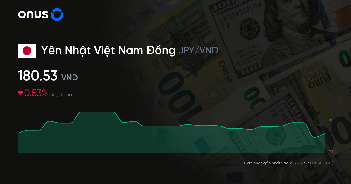 Việc quy đổi Yên Nhật (JPY) sang đồng Việt Nam (VND) thường được nhiều người quan tâm, nhất là khi có nhu cầu du lịch, học tập hoặc giao dịch thương mại với Nhật Bản. Tỷ giá giữa hai đồng tiền này không cố định mà thay đổi theo thị trường ngoại hối. Trong năm 2025, tỷ giá trung bình dao động khoảng 174 đồng Việt Nam cho mỗi 1 yên Nhật, với mức cao nhất từng đạt gần 184 đồng và thấp nhất khoảng 160 đồng.