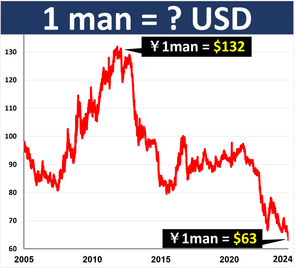 Hiện tại, tỷ giá quy đổi 1.000 Yên Nhật (JPY) sang Đô la Mỹ (USD) dao động khoảng 6,7 USD. Cụ thể, trong năm 2025, tỷ giá trung bình là khoảng 1 JPY = 0,00675 USD, nghĩa là 1.000 Yên sẽ đổi được khoảng 6,75 USD.