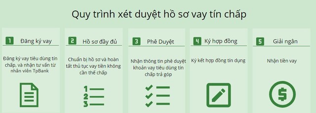 Quy trình thẩm định vay tín chấp tại TPBank được thiết kế đơn giản và hiệu quả, giúp khách hàng dễ dàng tiếp cận nguồn vốn. Đầu tiên, ngân hàng tiếp nhận hồ sơ vay vốn của khách hàng, bao gồm các giấy tờ như đơn đề nghị vay vốn theo mẫu, chứng minh nhân dân hoặc căn cước công dân, và giấy tờ chứng minh thu nhập.