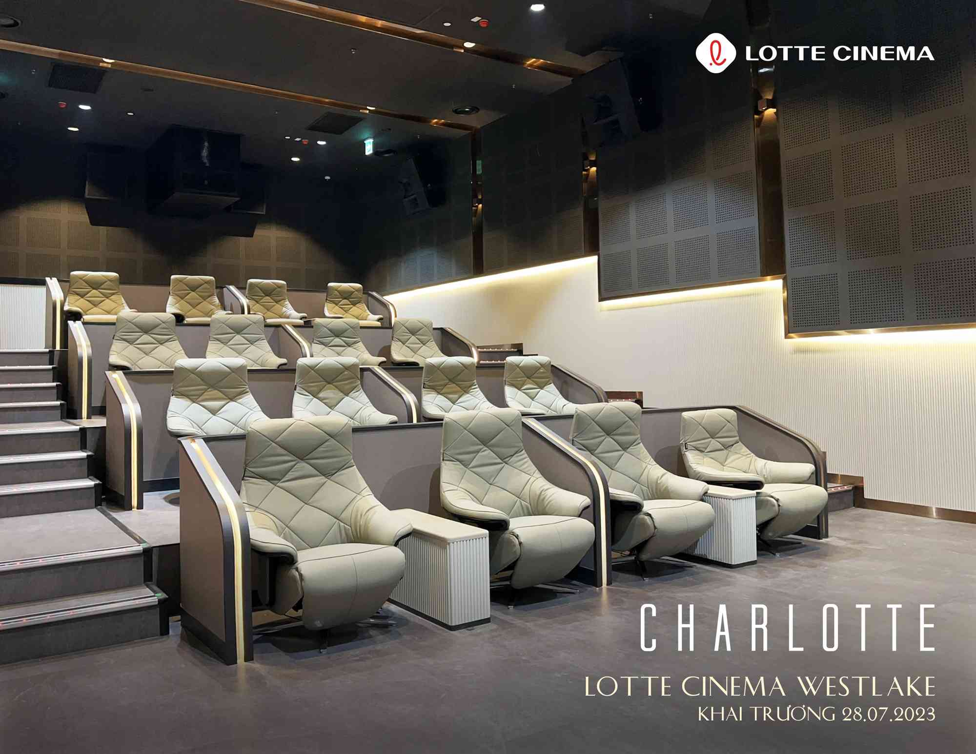 Đặc biệt, các phòng chiếu Charlotte đạt tiêu chuẩn quốc tế với ghế sofa rộng rãi, tạo cảm giác thoải mái tối đa cho người xem. Hệ thống âm thanh Dolby Surround và màn hình lớn đem lại những giây phút trải nghiệm sống động và chân thực, đưa khán giả vào thế giới điện ảnh đầy màu sắc.