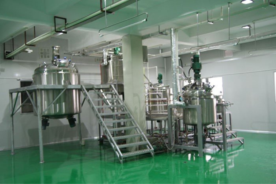 Tiếp theo, mọi thứ được đưa vào bồn trộn lớn. Một lượng nước phù hợp đổ vào trước, rồi các nguyên liệu rắn hòa tan dần, máy khuấy công nghiệp quay đều đặn với tốc độ vừa phải để tạo hỗn hợp đồng nhất. Quá trình nhũ hóa diễn ra ở đây, dùng máy tốc độ cao giúp các thành phần không tan lẫn vào nhau mịn màng, tạo độ nhớt lý tưởng.