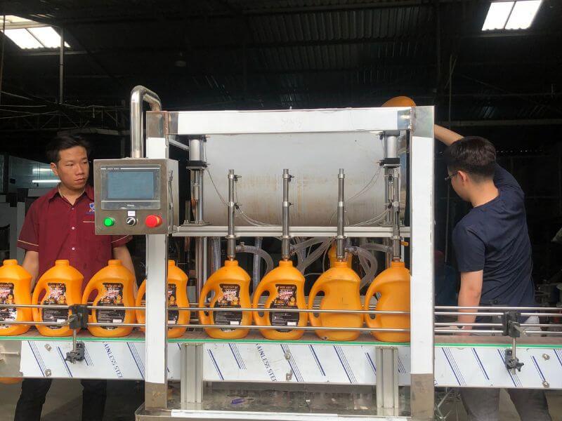 Quy trình diễn ra tự động hóa cao với máy chiết rót chính xác, đóng gói vào chai hoặc can, quấn màng co chắc chắn trước khi chuyển kho. Nhờ vậy, sản phẩm không chỉ sạch hiệu quả mà còn an toàn, ổn định lâu dài.