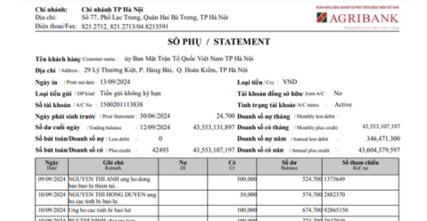 Sao kê tài khoản tại Agribank cũng rất đơn giản, khi chủ tài khoản có thể đến ngân hàng và yêu cầu sao kê trực tiếp. Với xác nhận mộc đỏ của ngân hàng, văn bản sao kê này không chỉ chính xác mà còn có giá trị pháp lý cao. Thao tác này không chỉ bảo đảm sự minh bạch mà còn giúp việc quản lý tài chính trở nên dễ dàng hơn bao giờ hết.