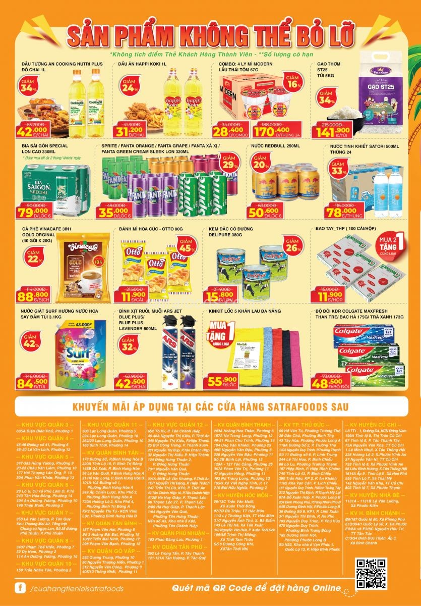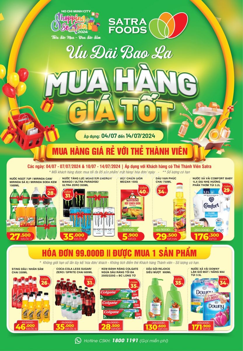 Về ưu đãi khi mua trực tuyến, SATRA Food thường xuyên có các chương trình khuyến mãi giảm giá trực tiếp trên sản phẩm. Khách hàng cũng có thể tải app Satra Loyalty Card để trở thành thành viên, đặt hàng nhanh chóng và tích điểm sau mỗi giao dịch, giúp tiết kiệm chi phí và nhận thêm nhiều ưu đãi hấp dẫn khác.