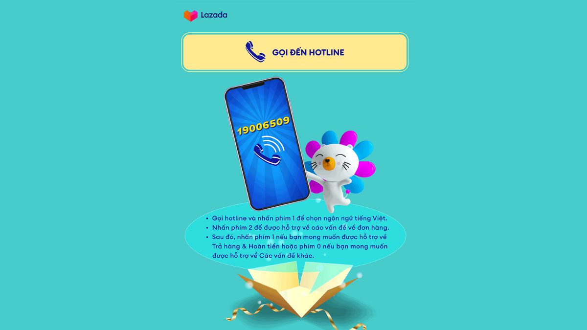 Nếu bạn cần hỗ trợ từ đội ngũ chăm sóc khách hàng của Lazada, việc liên hệ rất đơn giản. Bạn có thể gọi vào số hotline mới 1900 6509, hoạt động 24/7 để đáp ứng nhu cầu của khách hàng. Cước phí chỉ 1000 VNĐ/phút, nên bạn có thể yên tâm khi gửi thắc mắc hay khiếu nại bất cứ lúc nào.
