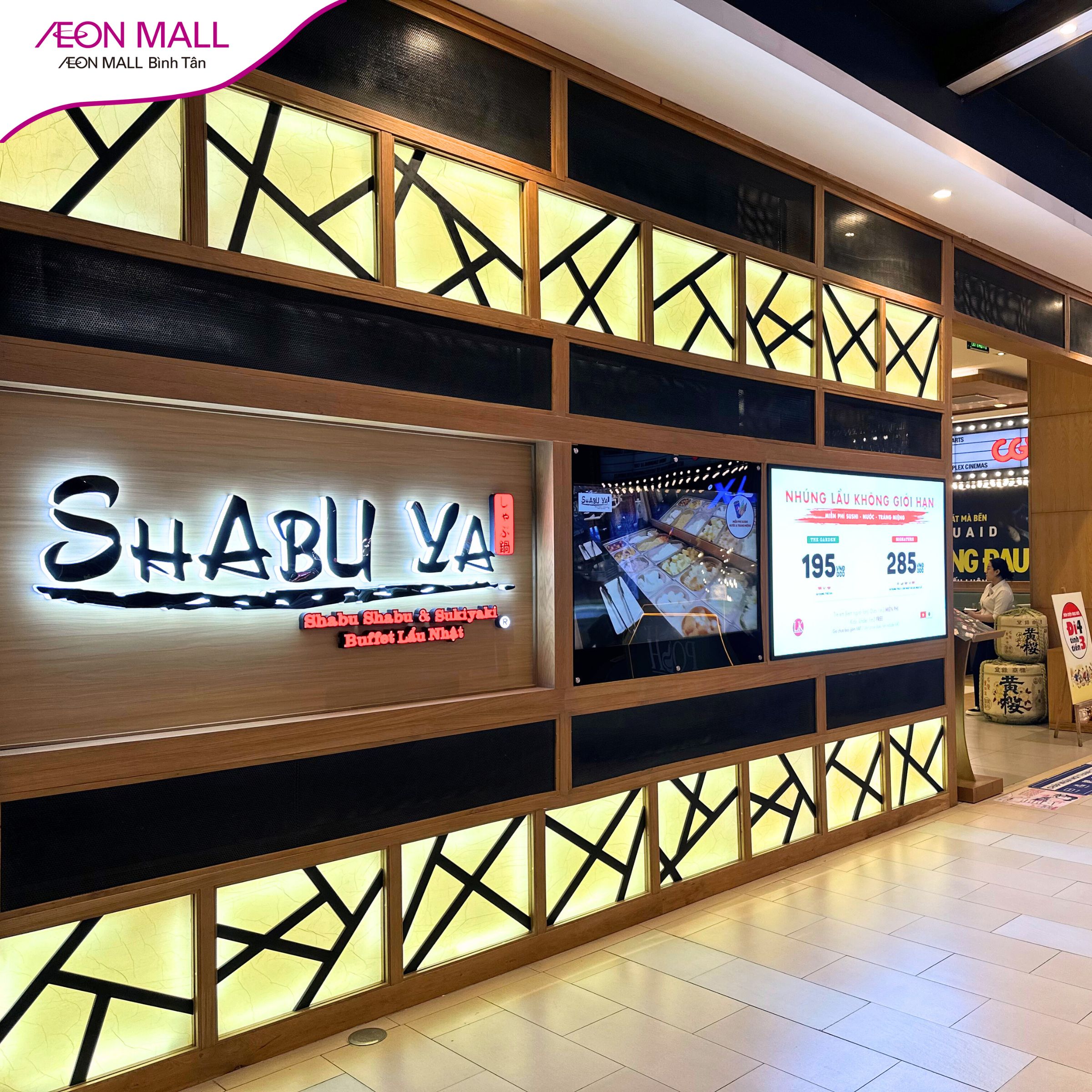 Shabu Ya Aeon Mall Bình Tân là điểm đến lý tưởng cho những tín đồ yêu thích món lẩu Shabu. Nằm tại tầng 3 của trung tâm thương mại AEON MALL Bình Tân, nhà hàng mang đến không gian ấm cúng và đậm chất ẩm thực Nhật Bản.