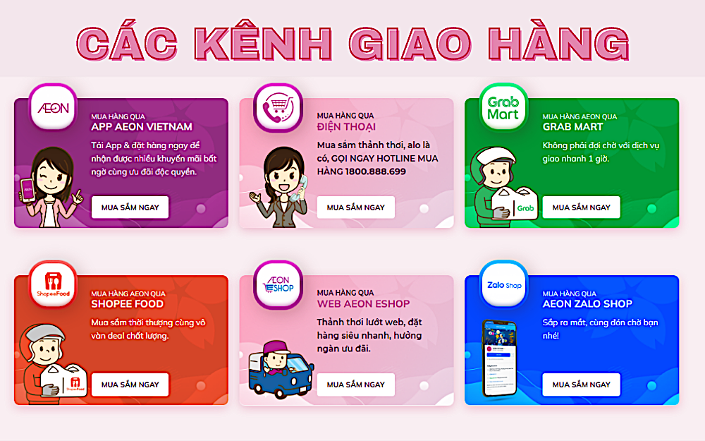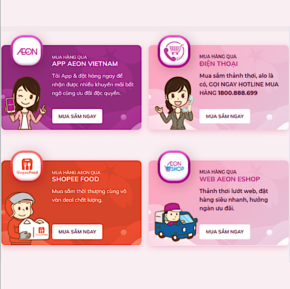 Ngoài Co.op Online, AEON cũng cung cấp dịch vụ mua sắm online chất lượng với hàng hóa phong phú và dịch vụ giao hàng tiện lợi. Từ thực phẩm đến điện máy, tất cả những gì bạn cần chỉ cách bạn vài cú click chuột. Hãy thử ngay dịch vụ mua sắm này để tận hưởng sự hiện đại, tiện lợi từ những siêu thị hàng đầu!