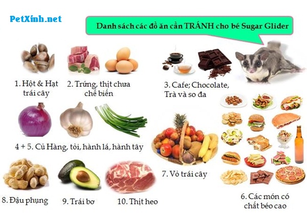 Đừng cho sóc ăn sữa tươi có đường hay sữa đậu nành, vì dễ gây tiêu chảy nặng, thậm chí nguy hiểm tính mạng. Thức ăn chế biến của người, socola, hành tỏi, khoai tây cũng độc hại lắm, làm rối loạn hệ tiêu hóa non nớt của chúng.