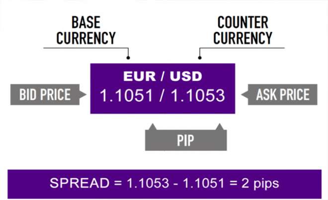 Spread trong Forex chính là khoảng cách giữa giá mua (Bid) và giá bán (Ask) của một cặp tiền tệ. Nói dễ hiểu, khi bạn muốn mua một đồng tiền nào đó, bạn sẽ phải trả giá cao hơn một chút so với giá mà người khác sẵn sàng bán ra. Khoảng cách nhỏ này gọi là spread, được tính bằng đơn vị pip – thường là số thập phân thứ tư trong giá tiền tệ.