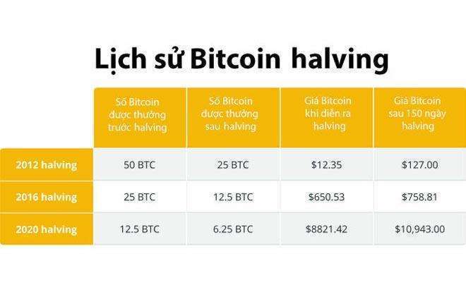 Bitcoin Halving là một sự kiện quan trọng trong hệ sinh thái tiền mã hóa, diễn ra sau mỗi 210.000 khối được khai thác, tương đương khoảng bốn năm một lần. Trong sự kiện này, phần thưởng cho các thợ đào giảm một nửa, nhằm kiểm soát nguồn cung và duy trì tính khan hiếm của Bitcoin. Đến nay, Bitcoin đã trải qua ba lần Halving: vào năm 2012, 2016 và 2020, với phần thưởng giảm từ 50 BTC xuống còn 6,25 BTC mỗi khối. Sự kiện Halving tiếp theo dự kiến sẽ diễn ra vào năm 2024, khi phần thưởng giảm xuống còn 3,125 BTC. ([okx.com](https://www.okx.com/vi/learn/what-is-bitcoin-halving?utm_source=openai))