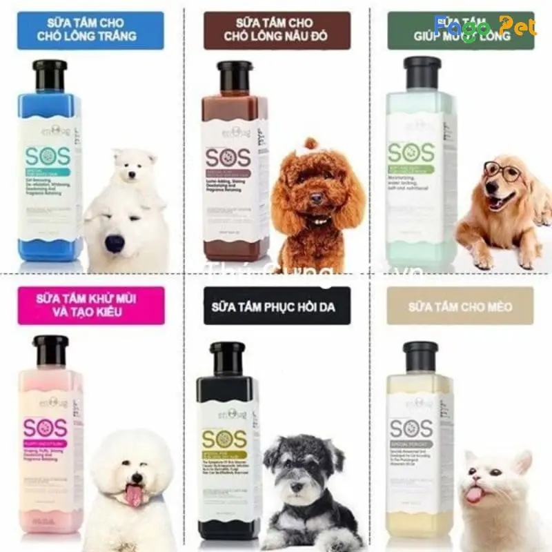 Hiện nay, có nhiều thương hiệu uy tín được các chủ nhân tin dùng. Sữa tắm SOS nổi bật với công dụng dưỡng ẩm nhờ tinh dầu argan, dừa và protein lúa mì, giúp lông mềm mượt và thơm lâu. Sữa tắm Forcans từ Hàn Quốc lại được yêu thích vì chiết xuất nha đam và thảo dược tự nhiên, an toàn cho da nhạy cảm.