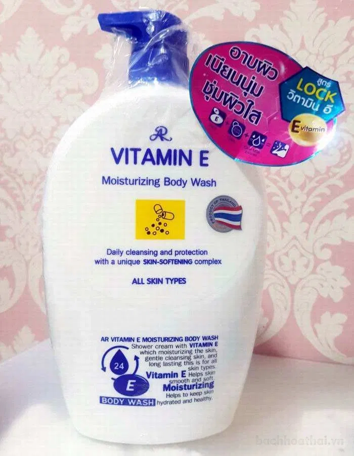 Sữa tắm vitamin E thường chứa Vitamin E (Tocopheryl Acetate) làm thành phần chính, giúp dưỡng ẩm sâu và chống oxy hóa mạnh mẽ cho da. Nó bảo vệ da khỏi gốc tự do, giữ cho làn da mềm mịn, không khô ráp sau khi tắm.